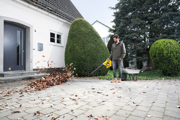 Акумуляторна повітродувка 36 В з двоступеневим регулюванням потужності розвиває максимальну швидкість потоку повітря 250 км/год. Повітродувка оснащена знімною плоскою насадкою зі скребком, яка дозволяє легко здувати листя, а також зчищати мокре листя або бруд, що злежався. Повітродувка легко балансує та її зручно тримати в руці під час використання.