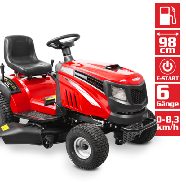 Садовий трактор HECHT 5114 - чудовий вибір для догляду присадибної ділянки. Потужний чотиритактний двигун HECHT OHV об'ємом 14 к.с. і номінальною потужністю 8,8 кВт гарантує швидке та ефективне косіння площі від 3000 до 4000 м2. Робоча ширина скошування 98 см та регульована висота від 30 до 90 мм дозволяє контролювати процес. Боковий тунельний викид забезпечує утворення органічного добрива. До нього можна встановити різне причіпне обладнання, наприклад невеликі бортові платформи, розкидачі тощо. Трактор не призначений для експлуатації на дорогах, але є ідеально підходить для великих садів, трав'яних неасфальтованих доріжок та ділянок.