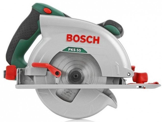 Справжня модель переносної циркулярки для домашнього застосування представляється торговою маркою Бош. В її забарвленні, як і у всіх побутових інструментах цього бренду, превалюють зелені кольори. Але за технічними характеристиками і надійності конструкції вона мало чим відрізняється від професійних інструментів такого ж класу від інших виробників.
