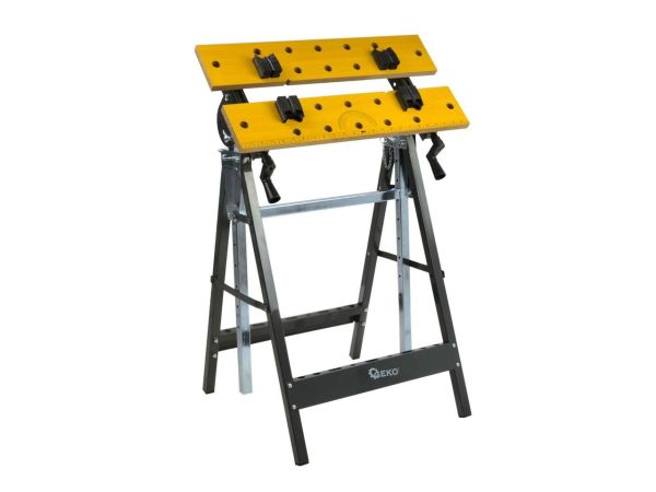 Верстак GEKO G10872 призначений для широкого використання на промислових підприємствах, у майстернях та навчальних закладах. Конструкція столу дозволяє регулювати положення стільниці та її ширину відповідно до форми предмета, який ви хочете на ній розмістити. Крім того, стільниця укомплектована затискними губками, які дозволяють кріпити на столі предмети різної форми. Регулювання столу здійснюється за допомогою ручок, розташованих на його правій і лівій стороні.