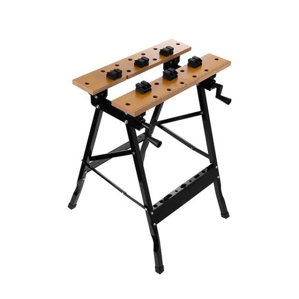Складаний верстак-лещата застосовується під час виконання різноманітних робіт, для затискання деталей і заготовок та їх подальшої обробки. Завдяки своїй складаній конструкції може транспортуватися та використовуватись у будь-якому місці, на виїзді без прив'язки до робочого простору. Також не займає багато місця під час зберігання.