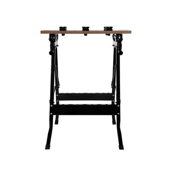 Виготовлений верстак з якісного сталевого профілю зі стільницею із ДСП, габаритами 605*240*790 мм, витримує рівномірне навантаження до 100 кг. За допомогою металевих розсувних планок верстак компактно складається для подальшого зберігання та транспортування.