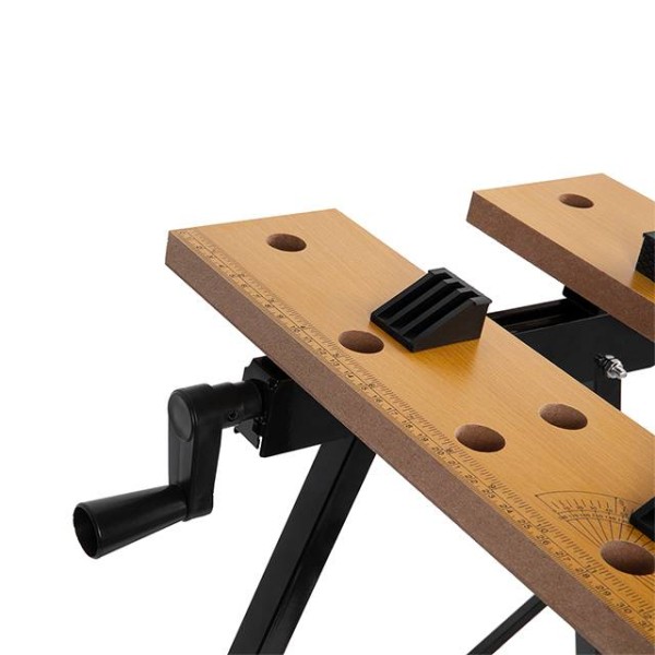 Стільниця верстака відіграє роль лещат і може використовуватися для фіксації різних за розмірами деталей. Завдяки двом зручним ручкам лещата можна відкрити та зафіксувати необхідний предмет, шириною до 27 см.