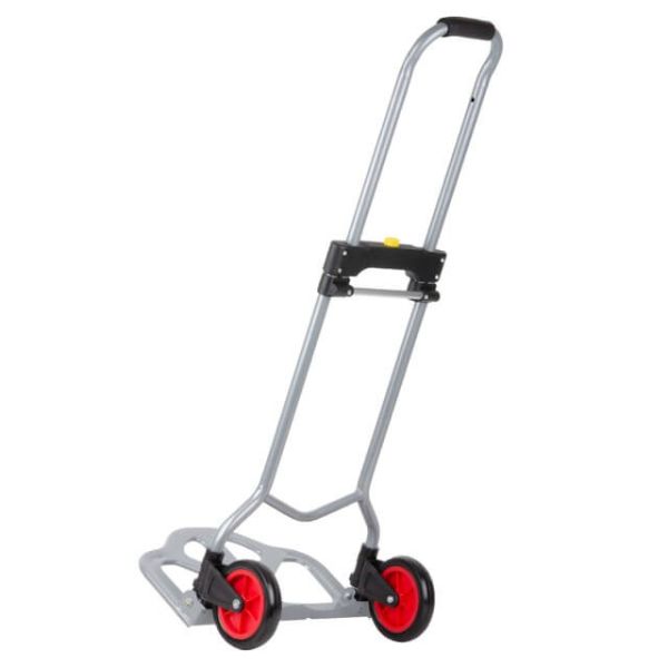 Призначення Ручний візок здатний значно зменшити витрати часу та сил на переміщення вантажів. Підходить для перевезення у закритих складах, на торгових точках та в домашньому господарстві. Зручна складана конструкція Мала вага (3.6 кг) та швидкий перехід в робочий стан роблять візок дуже зручним у використанні. Компактний у складеному вигляді (710*390*50 мм), легко поміститься в багажник автомобіля. Підготовка до роботи здійснюється у дві дії: - розкладіть ручку; - опустіть платформу. Надійний Візок виготовлений зі сталі, служитиме вам довго та надійно. У розкладеному стані ручка зручна за висотою (960 мм). Фіксується замками як в складеному, так і в розкладеному вигляді. Відкидна сталева платформа з габаритами 385*235 мм дозволяє швидко підхоплювати вантаж. Платформа міцна, не гнеться та не деформується завдяки ребрам жорсткості, рифленій поверхні та загнутому опорному краю. Легкий у керуванні Візок не вимагає особливих умінь та великих витрат вашої сили. Трохи відхиливши рукоятку на себе, ви легко перевезете вантаж загальною масою до 60 кг. М'яка ручка надійно сидить у руці навіть в дощ, зменшує навантаження на кисть та дозволяє довше працювати без втоми. Великі прогумовані колеса, діаметром 130 мм, мають м'який хід. Ручний візок дуже легкий у керуванні завдяки своїй невеликій вазі та габаритам. Ящики для інструментів, органайзери, системи зберігання №1 в Україні. За результатами незалежного рейтингового дослідження у рамках проекту Українська Народна Премія 2021 року.