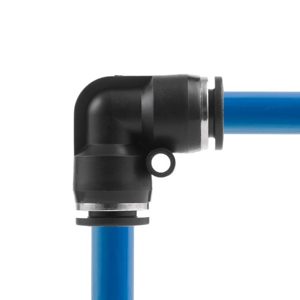 Цангове з'єднання L-подібної форми використовується для створення пневматичних магістралей і для монтажу пневмосистем. Забезпечує повністю герметичне з'єднання різних пневматичних шлангів без пошкодження їхньої поверхні (PU, PE, PA) - поліуретанових, поліетиленових, поліамідних тощо.