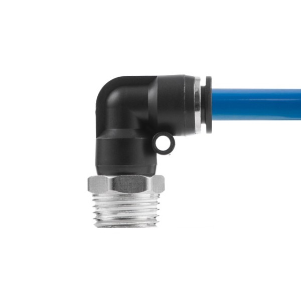 Цангове з'єднання L-подібної форми використовується для створення пневматичних магістралей і для монтажу пневмосистем. Забезпечує повністю герметичне з'єднання різних пневматичних шлангів без пошкодження їхньої поверхні (PU, PE, PA) - поліуретанових, поліетиленових, поліамідних тощо.