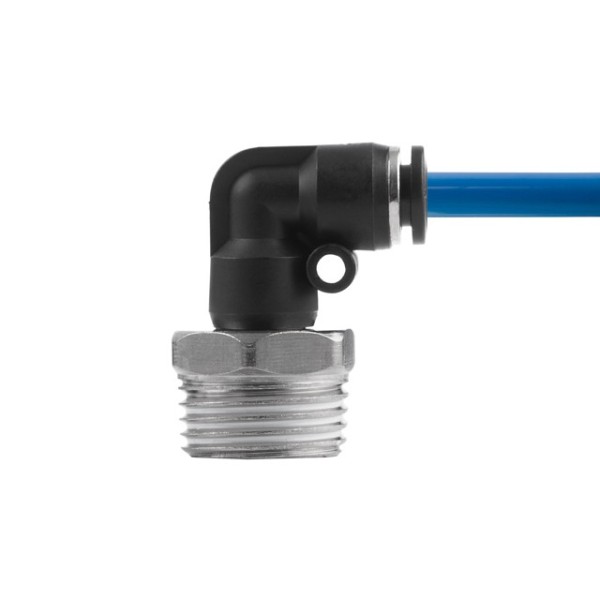 Цангове з'єднання L-подібної форми використовується для створення пневматичних магістралей і для монтажу пневмосистем. Забезпечує повністю герметичне з'єднання різних пневматичних шлангів без пошкодження їхньої поверхні (PU, PE, PA) - поліуретанових, поліетиленових, поліамідних тощо.