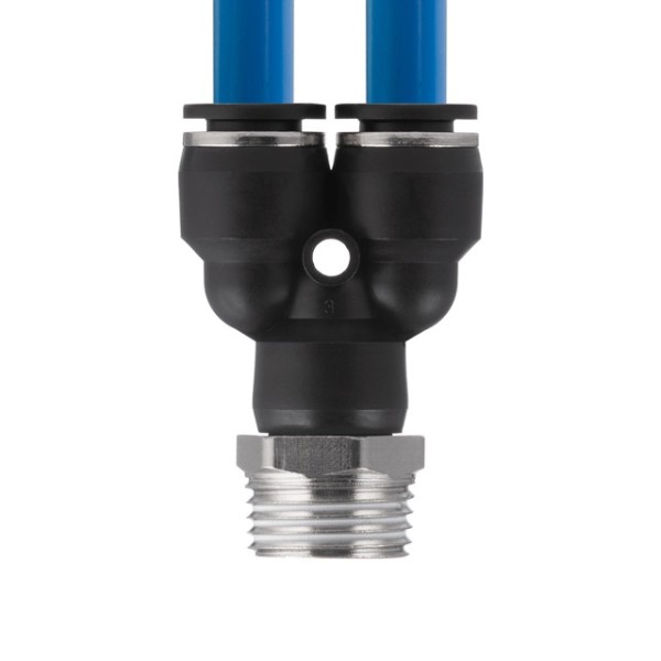 Цангове з'єднання Y-подібної форми використовується для створення пневматичних магістралей і для монтажу пневмосистем. Забезпечує повністю герметичне з'єднання різних пневматичних шлангів без пошкодження їхньої поверхні (PU, PE, PA) - поліуретанових, поліетиленових, поліамідних тощо.