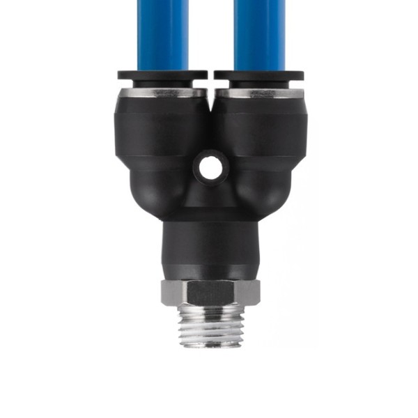 Цангове з'єднання Y-подібної форми використовується для створення пневматичних магістралей і для монтажу пневмосистем. Забезпечує повністю герметичне з'єднання різних пневматичних шлангів без пошкодження їхньої поверхні (PU, PE, PA) - поліуретанових, поліетиленових, поліамідних тощо.