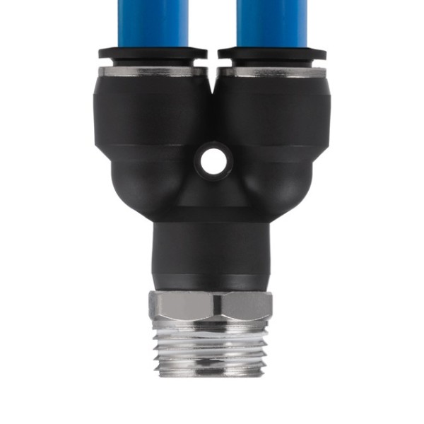 Цангове з'єднання Y-подібної форми використовується для створення пневматичних магістралей і для монтажу пневмосистем. Забезпечує повністю герметичне з'єднання різних пневматичних шлангів без пошкодження їхньої поверхні (PU, PE, PA) - поліуретанових, поліетиленових, поліамідних тощо.