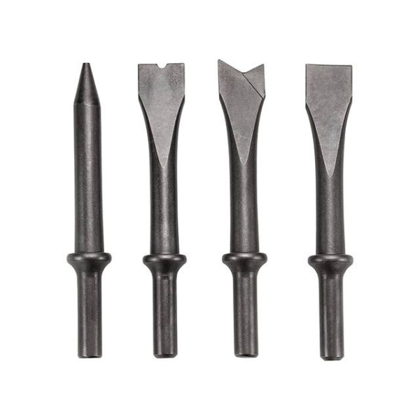Легка та компактна конструкція, ергономічний дизайн у вигляді пістолета, дозволяє керувати інструментом однією рукою та діставати до важкодоступних місць. Прогумоване руків’я відмінно фіксується в руці та не ковзає під час роботи. У комплекті до пневмозубила передбачені чотири насадки, що робить інструмент більш універсальним.